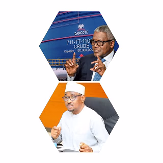 (Top) President and Chief Executive of Dangote Industries Limited, Aliko Dangote, Chief Executive Officer of the Nigerian Midstream and Downstream Petroleum Regulatory Authority (NMDPRA), Engr Farouk Ahmed