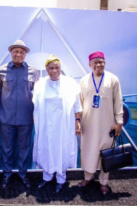 *Middle: Senator Buhari AbdulFatai Omotayo, PhD, Chairman of the Senate Committee on Aviation and Aerospace Development, at the maiden Nigerian Aircraft Acquisition and Investment Summit, 2026, holding in Lagos. Themed “Unlocking Capital, Confidence and Capacity in Nigeria’s Aviation,” the summit is aimed at extracting tangible deliverables that unlock Nigeria’s aviation potential for investment and aircraft acquisition. On the left of the photograph is Olorogun Festus Keyamo, SAN, Minister for Aviation.*
