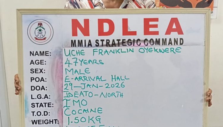 A Brazil based Nigerian businessman Uche Franklin Onyekwere has been arrested by operatives of the National Drug Law Enforcement Agency (NDLEA) at the arrival hall of the Murtala Muhammed International Airport (MMIA) Ikeja-Lagos for concealing parcels of cocaine in his private part and soles of his footwear.